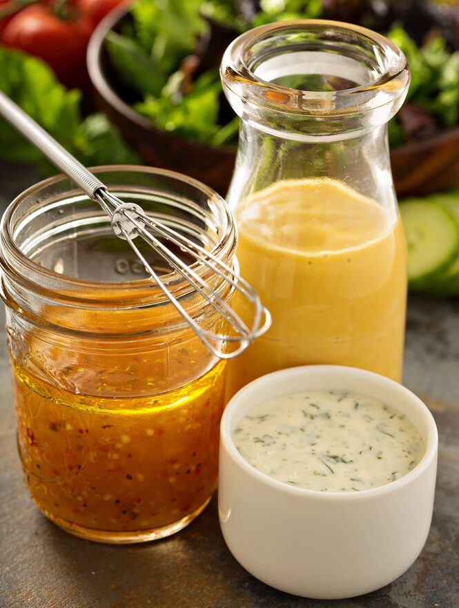 • Glass salad dressing bottles – Designed for shaking and pouring