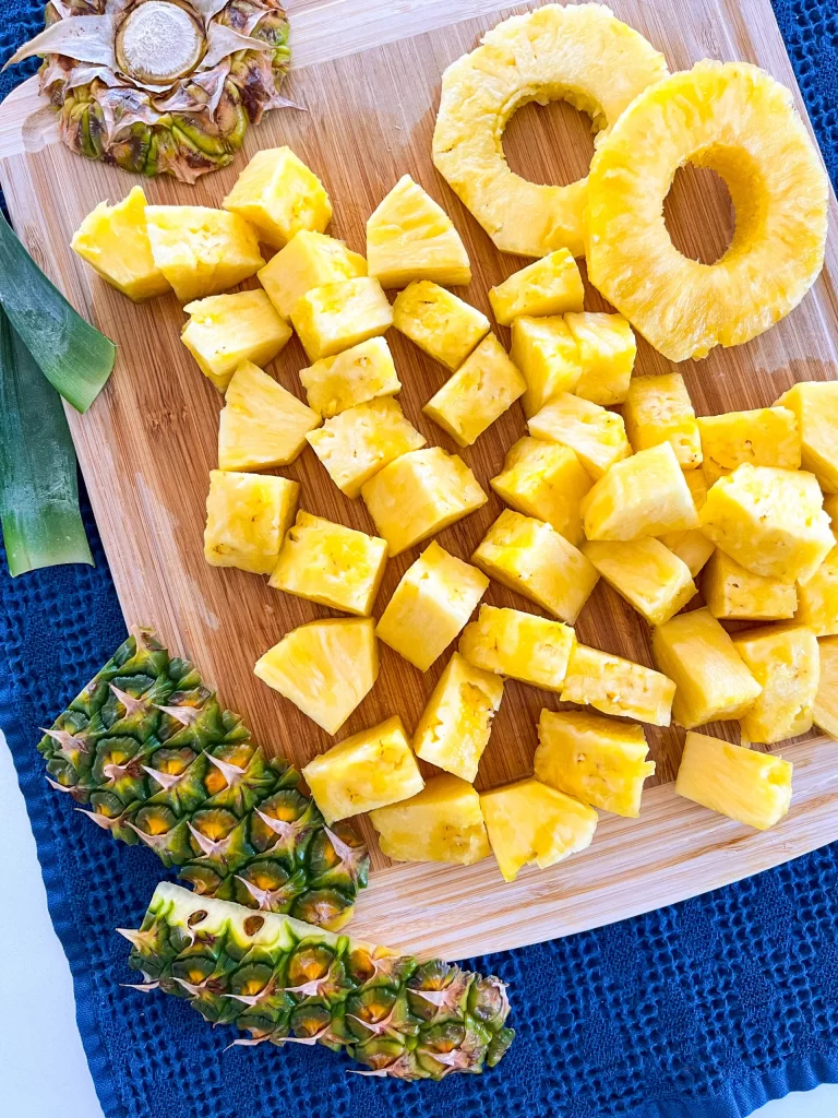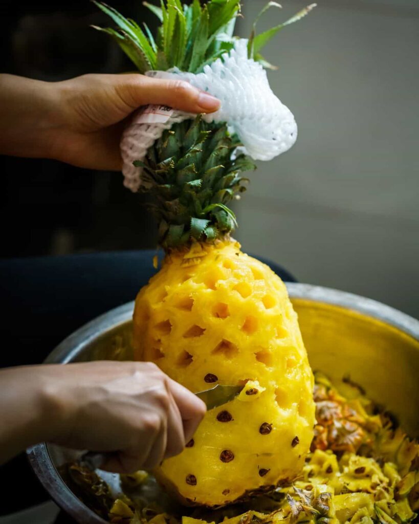 Note: If a pineapple has a fermented smell, is leaking juice, or has soft brown patches, it’s past its prime.