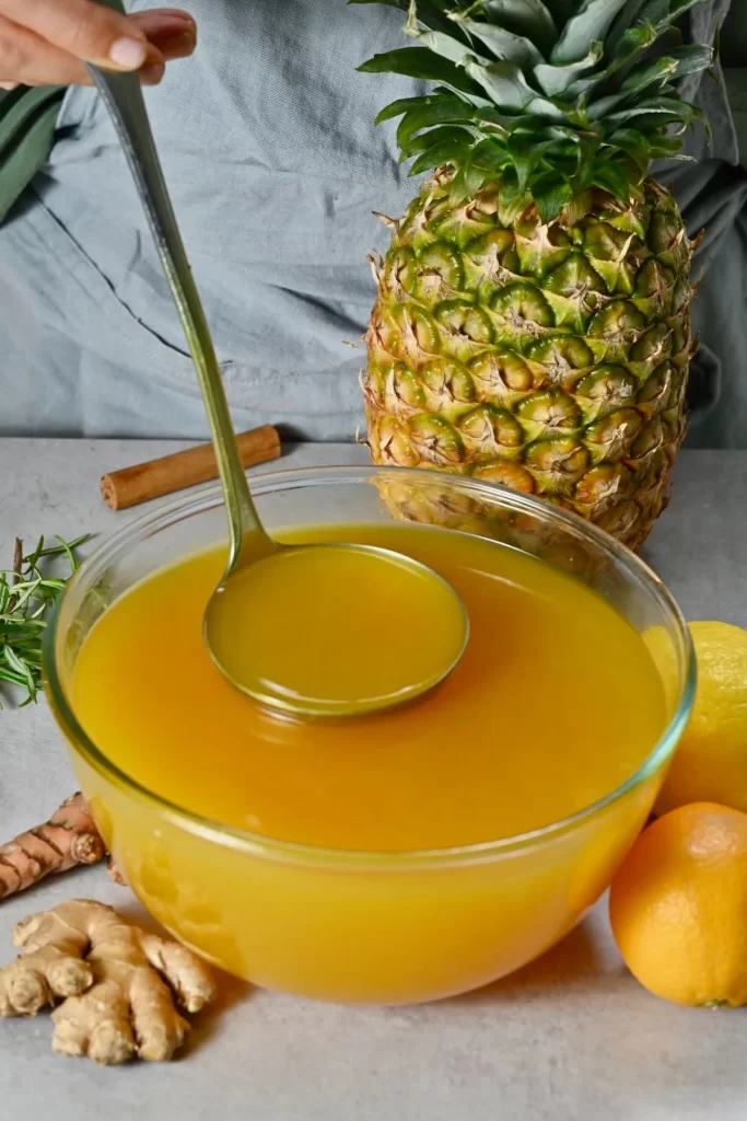 • Pour freshly squeezed pineapple juice over the top until fully covered.