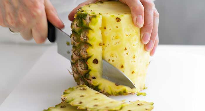 1. Slice pineapple into ¼-inch rounds or thin wedges.