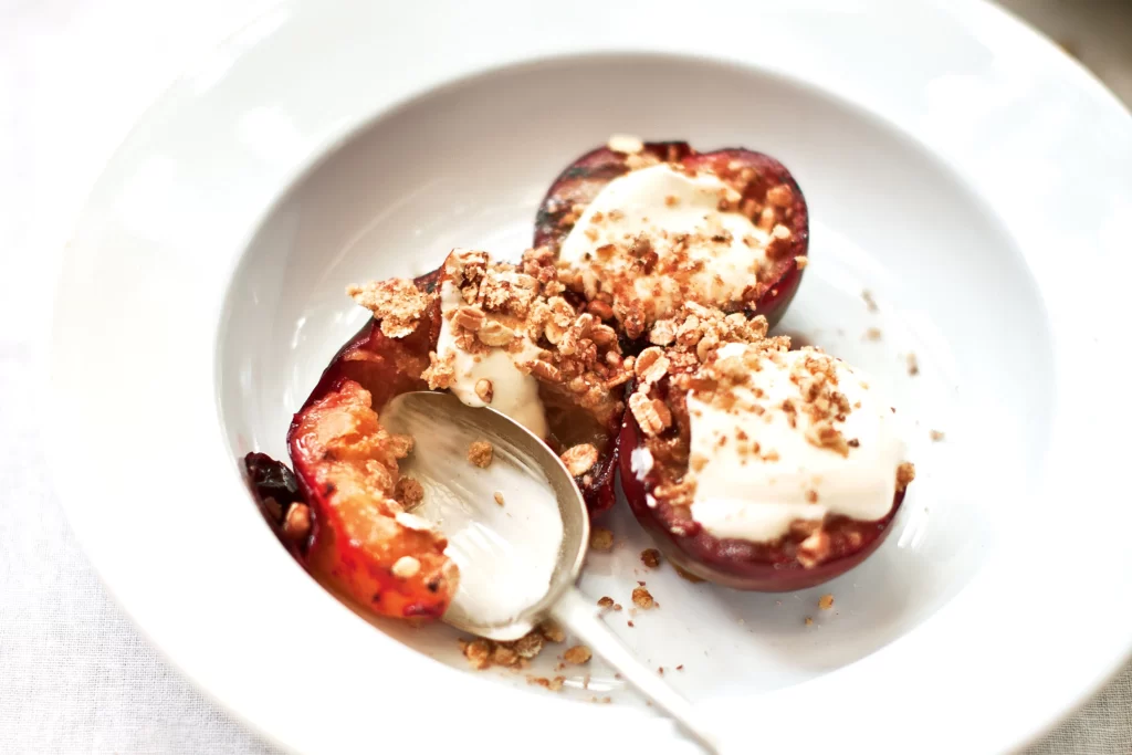 A rustic plum crumble is the ultimate easy dessert. Toss sliced plums with a little sugar and lemon juice, then top with a simple oat and almond flour crumble. Bake until golden and bubbling. Serve with coconut whipped cream or non-dairy ice cream for a delicious plant-based indulgence that’s perfect for family dinners or cozy nights in.
